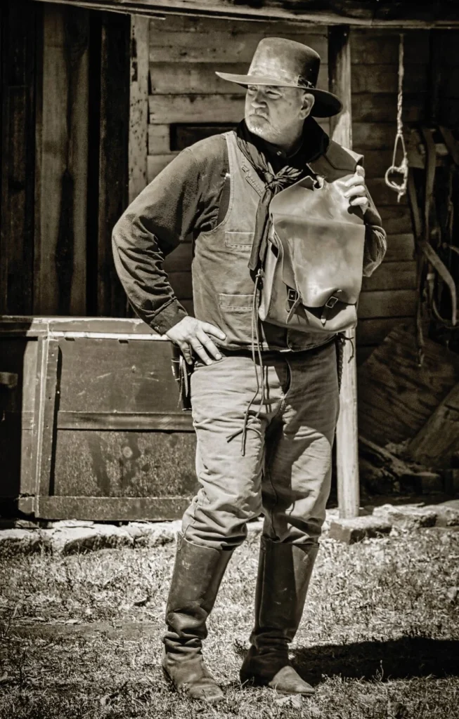 Jeffrey L. Barnhart, a Wichita, Kansas native and proud Navy veteran, developed his deep love for Western history, trains, and storytelling thanks to his maternal grandmother, affectionately known as Grandma Winki. Growing up on Santa Fe Road across from the railroad tracks, Jeff spent countless hours on her porch swing, listening to tales of her early life in Wichita and classic Western stories. She introduced him to legends like Louis L’Amour and Zane Grey, as well as Western TV staples like Bonanza and Gunsmoke, sparking his lifelong passion for the Old West. Her influence shaped not only his imagination but also his dreams—dreams he made reality when he began volunteering at Old Cowtown Museum as a cowboy reenactor after retiring from a distinguished 22-year Navy career as a Chief Petty Officer.